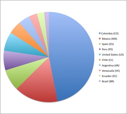 Para despedirme, quisiera hacer un pequeño repaso de los logros del blog. El blog fue creado en septiembre de 2007 bajo un dominio de blogspot (ver acá) hasta febrero de 2010 cuando nos mudamos al actual dominio. Si sumamos las visitas de las dos páginas, encontramos la no despreciable suma de 112,815 hits. Ahora, si nos concentramos en las visitas que ha recibido solo esta página, los números también son buenos. El número de visitantes por día ha crecido sin cesar y actualmente, y en la última medición semanal se registraron visitas de 97 personas por día desde diferentes lugares del Mundo. Los diez primeros países donde están nuestros visitantes son los siguientes: