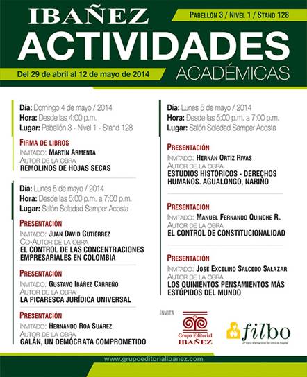 El día de hoy, lunes 5 de mayo, presentaré el libro «El control de las concentraciones empresariales en Colombia» que escribí junto con los profesores Alfonso Miranda Londoño y Natalia Barrera Silva en el marco de la Feria del Libro de Bogotá. La presentación tendrá lugar en el salón Soledad Samper Acosta de Corferias a partir de las 5:00 de la tarde.