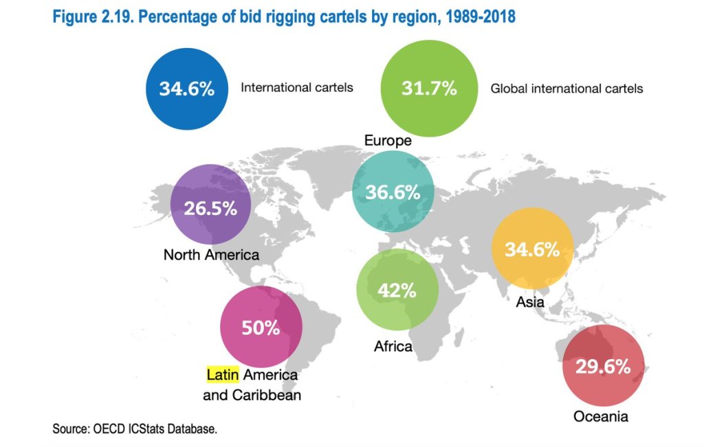 Dos datos del reporte «OECD Competition Trends 2020» sobre América Latina: colusión en licitaciones y duración de carteles
