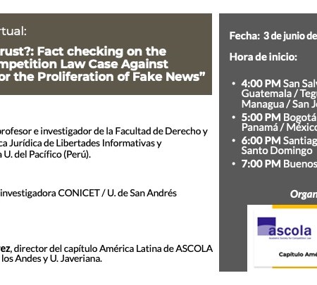 19 mayo, 202026 mayo, 2020 Juan David Gutiérrez R. «Fake Antitrust?: Fact checking on the Alleged Competition Law Case Against Facebook for the Proliferation of Fake News» – Primer coloquio virtual del capítulo América Latina de ASCOLA