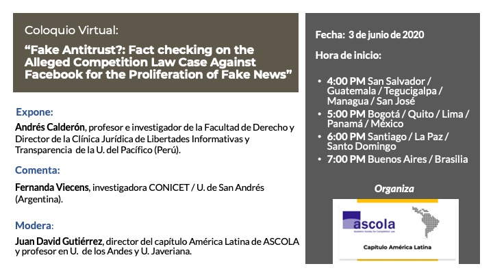 El paper que presentará Andrés Calderón, «Fake Antitrust?: Fact checking on the Alleged Competition Law Case Against Facebook for the Proliferation of Fake News», puede descargarse acá.