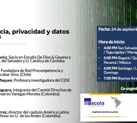 «Competencia, privacidad y datos personales»: Próximo seminario del capítulo América Latina de ASCOLA
