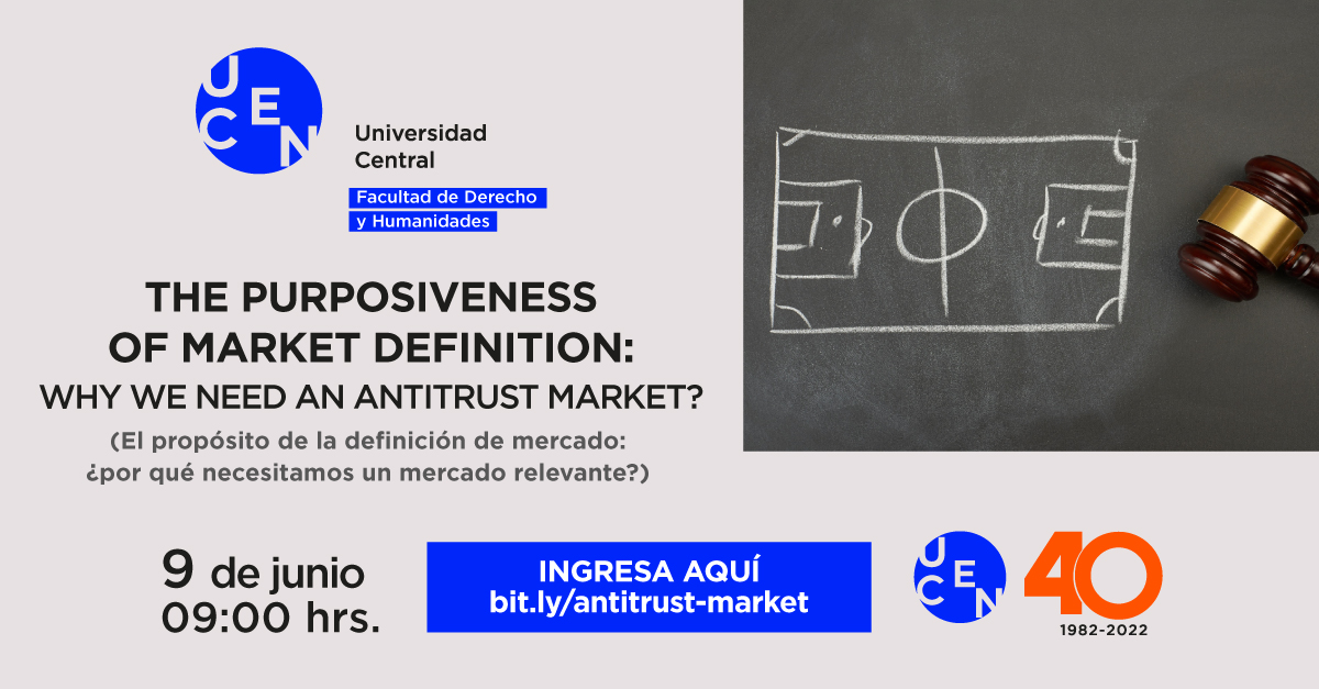 El 9 de junio a las 9:00 horas (Santiago de Chile), la profesora Magali Eben (U. de Glasgow) presentará su artículo sobre el propósito de la definición de mercado en los procesos de derecho de la competencia en un evento organizado por la U. Central. Los comentarios estarán a cargo de Richard Tepper, candidato a Doctor en Derecho en la n U de Edinburgh.