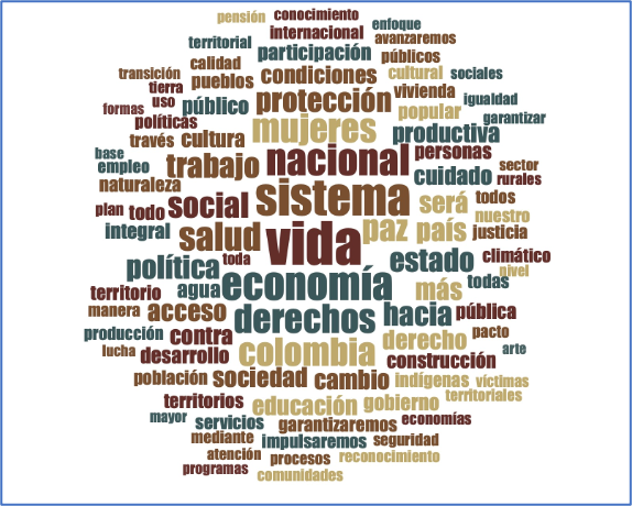 Figura 1 – Nube de intensidad de uso de palabras del programa de gobierno “Colombia potencial mundial de la vida”
