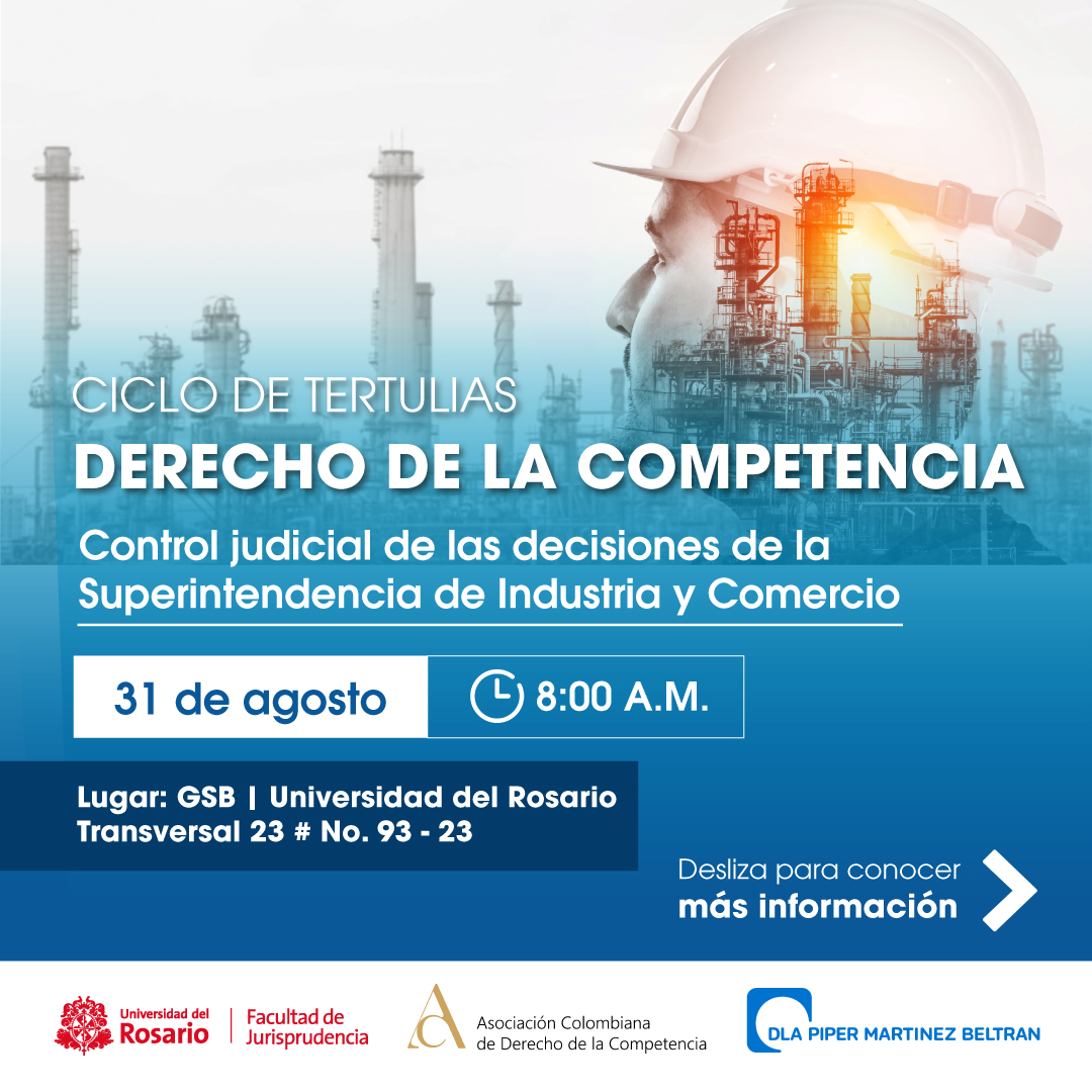 Este ciclo está compuesto por 3 charlas empezando con una discusión sobre el control judicial de las decisiones adoptadas por la Superintendencia de Industria y Comercio en materia de protección de la libre competencia, con la participación de Julián Solorza Martínez y Carlos Andrés Perilla.