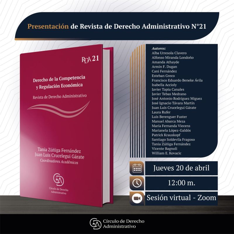 - Con motivo de la presentación de la RDA21 Únanse a nosotros el 20 de abril a las 12:00 m. (Lima local time) para disfrutar de una tarde de intercambio virtual entre colegas apasionados por el Derecho y Economía de la Competencia.