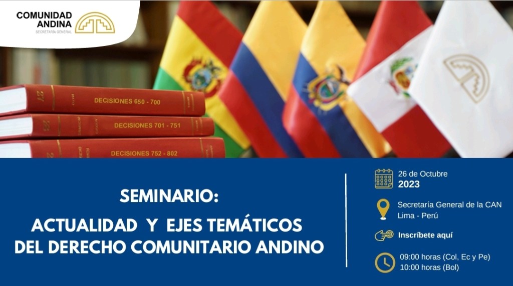 25 octubre, 2023 Juan David Gutiérrez R. Seminario web: Actualidad y ejes temáticos del Derecho Comunitario Andino / 26 de octubre 2023 Registro: https://sgcan.webex.com/weblink/register/ra287f89d71709fc8261f9d9748bc9862 ProgramaDescarga Comparte esto: Haz clic para compartir en X (Se abre en una ventana nueva) X Haz clic para compartir en Facebook (Se abre en una ventana nueva) Facebook Haz clic para enviar un enlace por correo electrónico a un amigo (Se abre en una ventana nueva) Correo electrónico Haz clic para compartir en LinkedIn (Se abre en una ventana nueva) LinkedIn Haz clic para compartir en Pinterest (Se abre en una ventana nueva) Pinterest Haz clic para imprimir (Se abre en una ventana nueva) Imprimir Me gusta Cargando... Relacionado