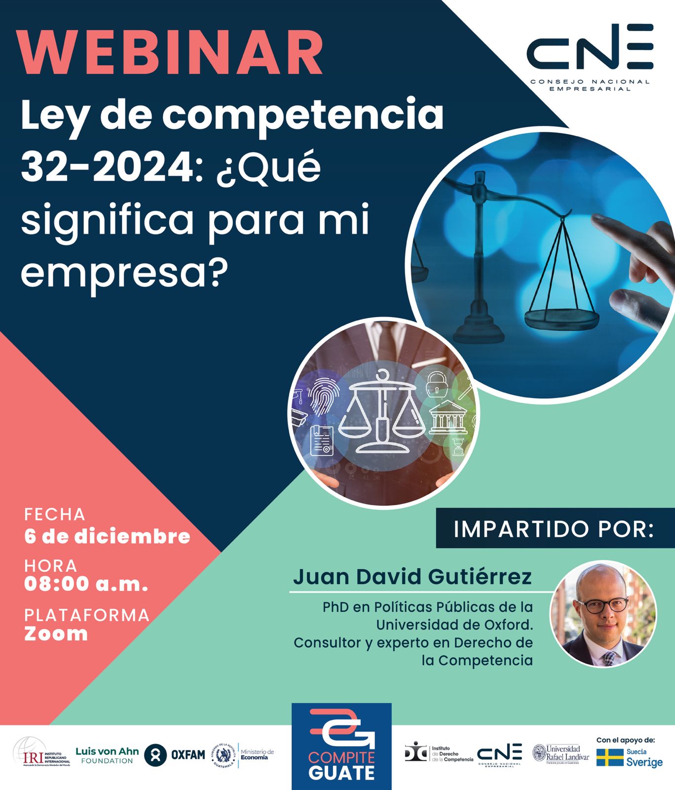 El 6 de diciembre tuve el gusto te participar en un webinar titulado «Ley de Competencia 32-2024 en Guatemala: ¿Qué significa para los empresarios?» organizado por el Consejo Nacional Empresarial de Guatemala.