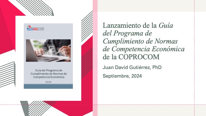 Primero encuadré la ley en del marco de legislaciones análogas en América Latina y expliqué el tipo de beneficios esperados de la competencia en una economía de mercado competencia. Luego, discutí sobre los objetivos de la ley y sus implicaciones para las empresas. Además, describí el proceso de «maduración» de la Superintendencia de Competencia que espero tenga dicha autoridad. Finalmente, argumenté por qué vale la pena que las empresas expuestas a riesgos de incumplimiento implementen programas de cumplimiento («compliance») para prevenir prácticas anticompetitivas.