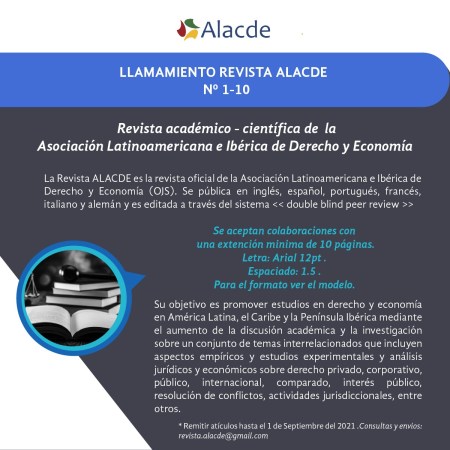 16 julio, 202116 julio, 2021 Juan David Gutiérrez R. Convocatoria de artículos en Derecho y Economía de la Revista ALACDE