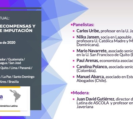 «Delación, recompensas y criterios de imputación de conductas anticompetitivas»: Próximo seminario virtual del capítulo América Latina de ASCOLA