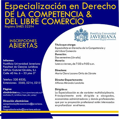 Especialización en Derecho de la Competencia & del Libre Comercio (U. Javeriana)